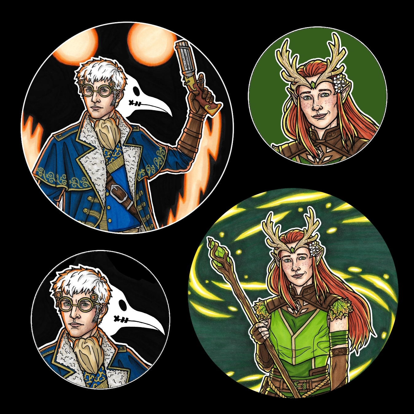 Button badge designs feat. Percy de Rolo and Keyleth from Critical Role Small badges are 36mm, and large badges (also available as keyrings) are 58mm